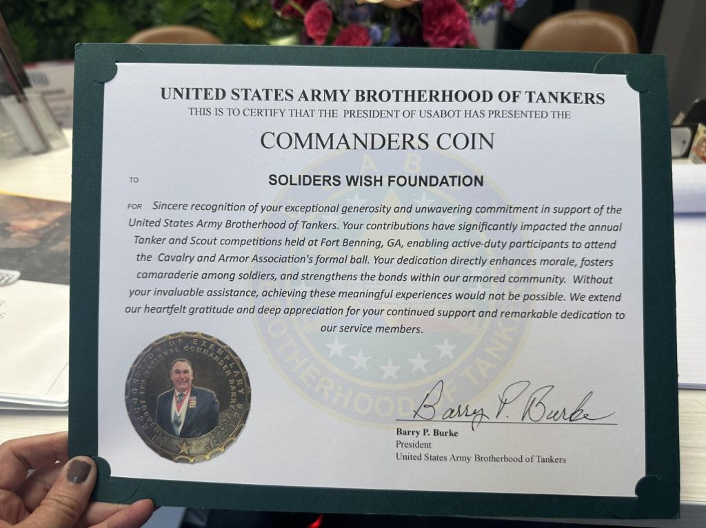 2025 Commander’s Coin and Gainey Cup /Jody Harmon Print Awarded to Soldiers Wish Foundation by flemmingdesignco | Jun 25, 2025 | Uncategorized | 0 comments Submit a Comment Cancel replyYour email address will not be published. Required fields are marked *Comment * Name * Email * Website Save my name, email, and website in this browser for the next time I comment.